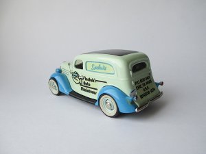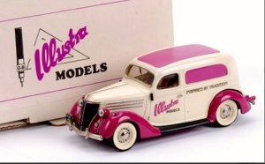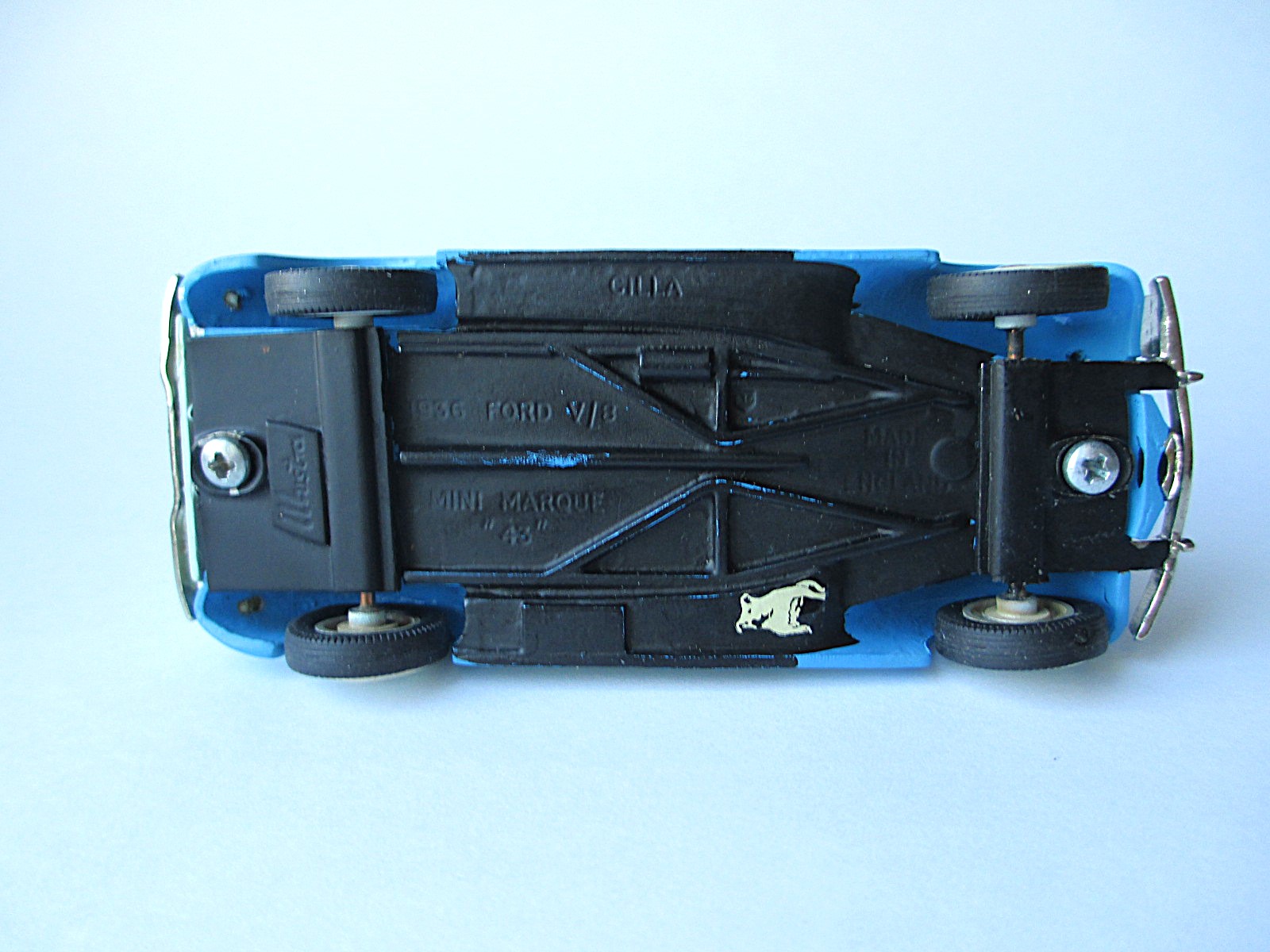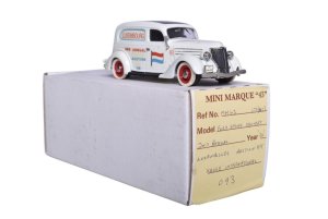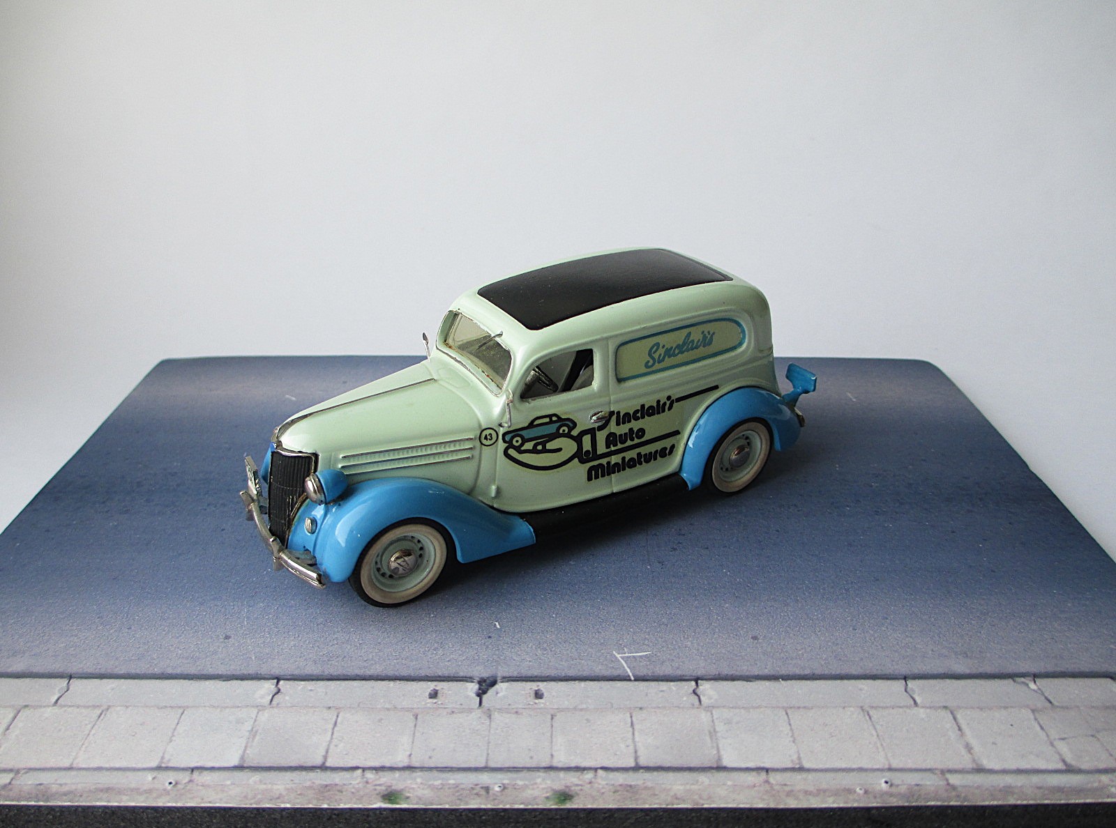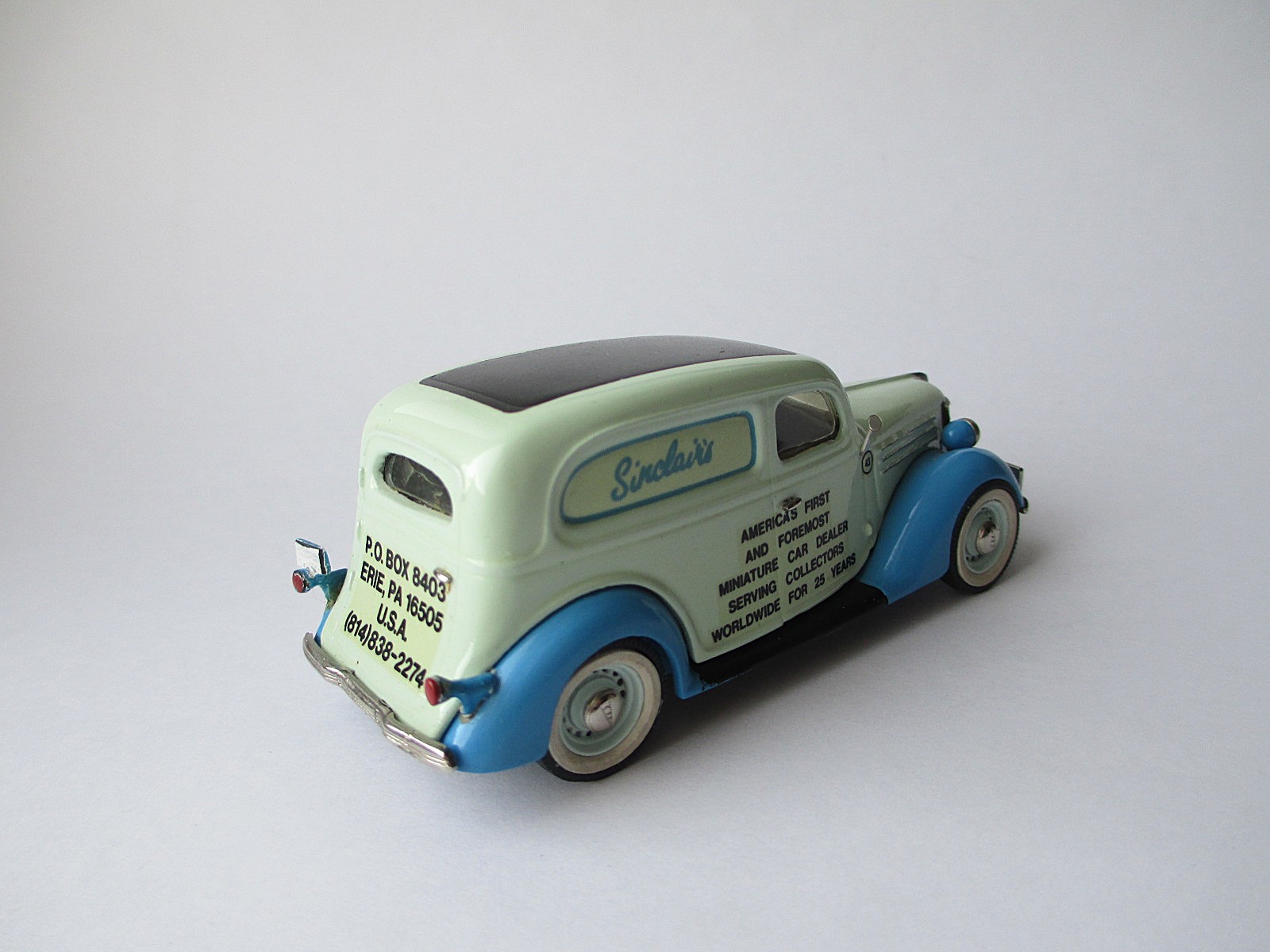 Ford V 8 Sedan Delivery Mini Marque (LTD MM 43/4) Почти совсем свежее поступление. Есть более интересные модели, но пока продолжим вот с этим: В технические характеристики автомобиля углубляться не будем. Технических инноваций там нет. Зато! при поиске информации про этот Форд помощник Алиса AI выдаёт вот такие "пёрлы" в характеристиках этого авто: Особенности: улучшенная подвеска, кожаный интерьер, электрические окна, стерео AM/FM с Bluetooth. Прелестно! Соврёшь - недорого возьмёшь. Никому не верьте. Только себе. Старенький Mini Marque. К 25-летию Минимарка выпустили серию фургончиков девяти разновидностей. Мой с рекламой американского магазина моделек Sinclaire's. По спецзаказу. Редкий. * Белый металл. Сделано в Англии. Вес модельки 210 г. И по традиции - хозяйский пёс Cilla на днище.