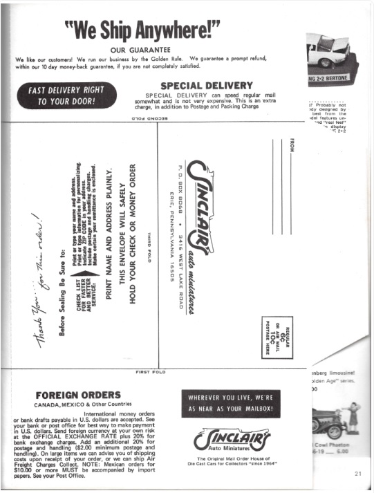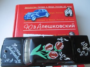 Игорь, не уверен, что дилерская сеть Sinclaire's auto miniatures ещё существует. Скорее всего давно закрылись. В своё время было очень популярным местом для коллекционеров. Ну да, мой фургончик останется на память как сувенирная рекламная продукция. Вот такие рекламные фургончики есть у Минимарка. Совершеннейшая редкость. 2nd Annual Luxembourg Auction 1989 - Kruse International и Illustra Models. Немного офф-топ, но иногда можно увидеть почти совершенно дикие вещи на наших модельках: Перелистывал давно Юза Алешковского - и как по заказу попал ко мне в коллекцию Зил-115. "Николай Николаевич". Кому то на 40 лет подарили. Хотя многие из суеверия чураются этой даты и даже не отмечают свой ДР. Или вот такая "Чайка". "На долгую память". Да ещё четыре цветка на крыше. Что бы это значило? Так называемая "саратовская хохлома". Или "Околозавод". Я уже не говорю об официальной продукции Тантала с вычурными тамповками. (Книга и модели из моей коллекции).
