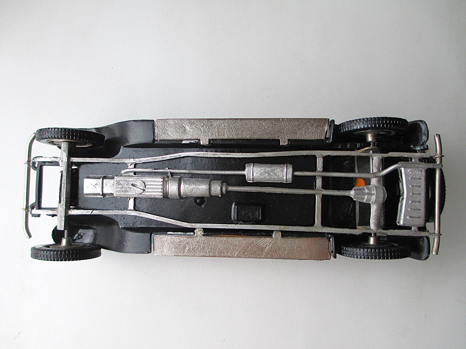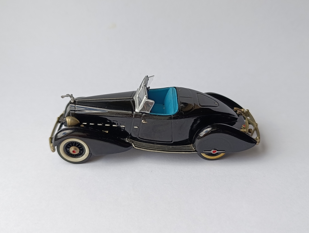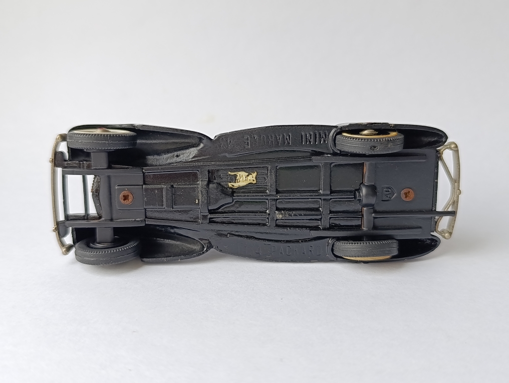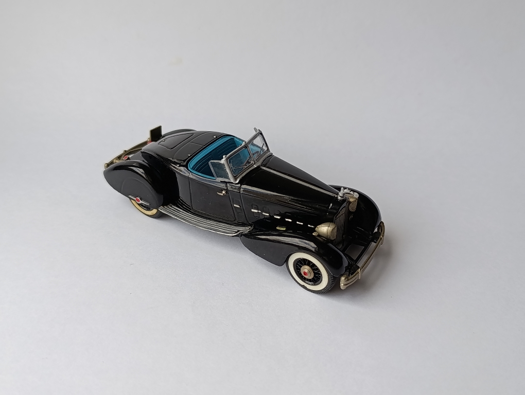 Точно так. Когда у масштабной модели есть ещё и "легенда", которую можно представить почтенной публике, - вообще супер. Хоть и травматичная, как в случае с моим Кордом. Packard Light 8 Coupe Brooklin Models (BRK 6) Модель простенькая. Модель старая. Одна из первых, вышедших в свет в 1976 году. Выпуск прекращён в 1989 г. На днище инициалы "JS" - Джулиана Стюарта, который делал мастер-классы для Джона Холла (управляющего Бруклин Моделс), пока он не решил уйти и основать свою собственную компанию Durham Classics. Модель мне досталась сильно Б/У, но я её восстановил. Есть пара скольчиков, подкрасил, почти незаметно. Вайтволы превратились в йеллоуволы. Но не стал менять. Хотя это не сложно. Можно было просто развернуть их желтизной внутрь. Пусть уж совсем под старину будет. Маскот, который был утрачен, сделал сам из остатков белого металла. * Белый металл. Сделано в Канаде. Вес модели - 278 гр. P.S. Кстати, обратили внимание на коробку? Это тоже характерная особенность для Бруклина. Делать грамматические ошибки.