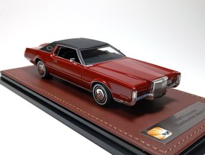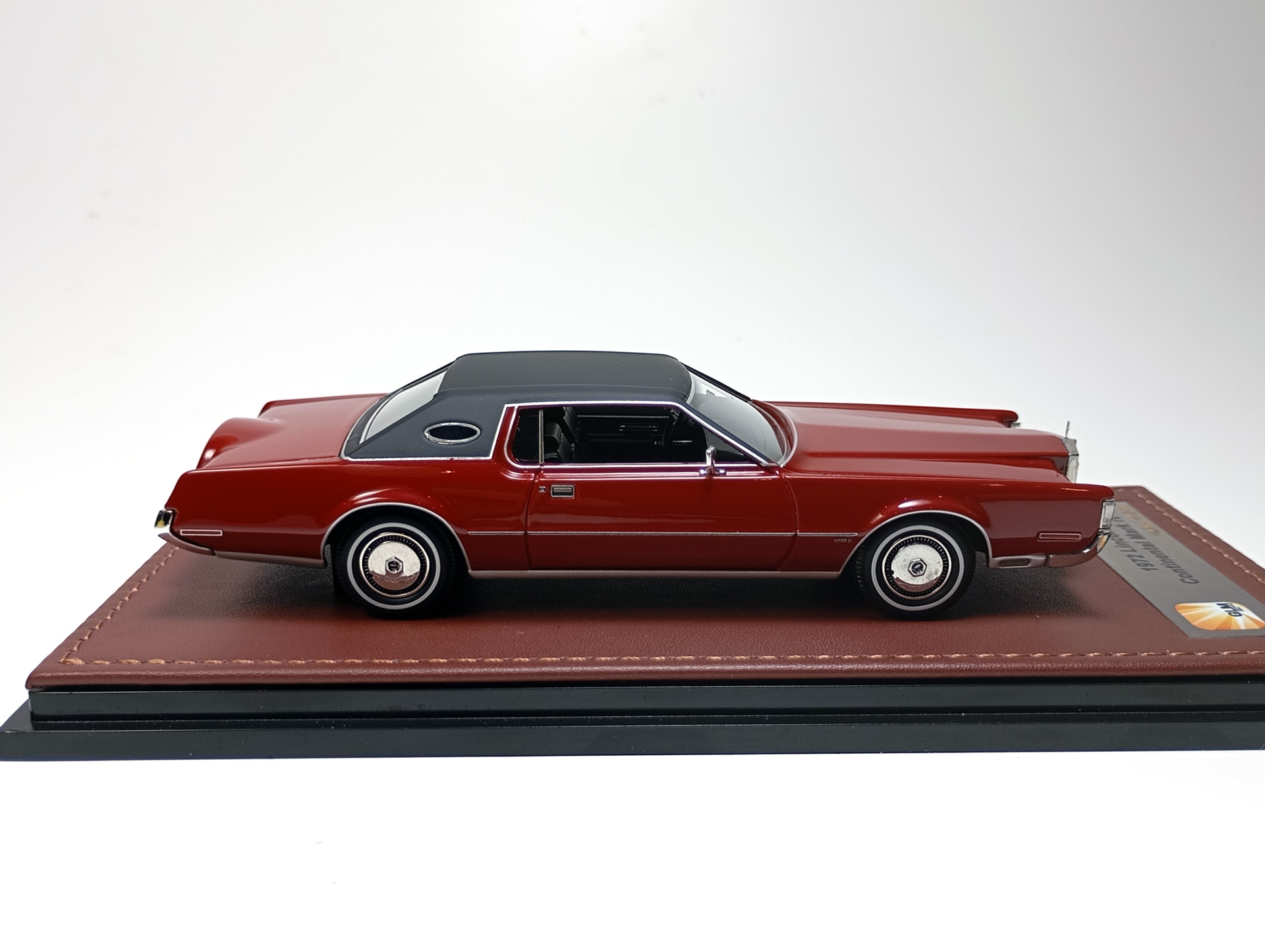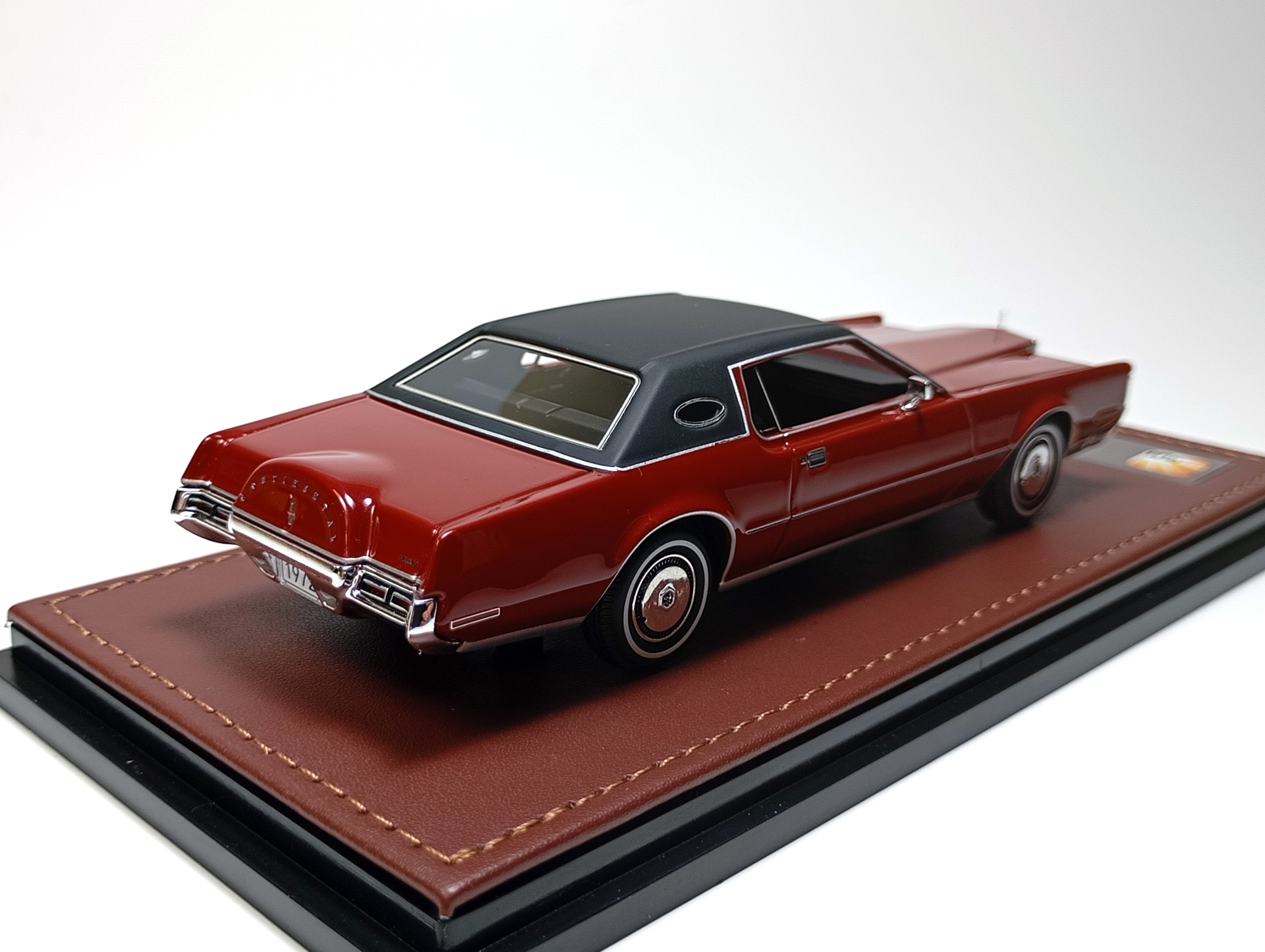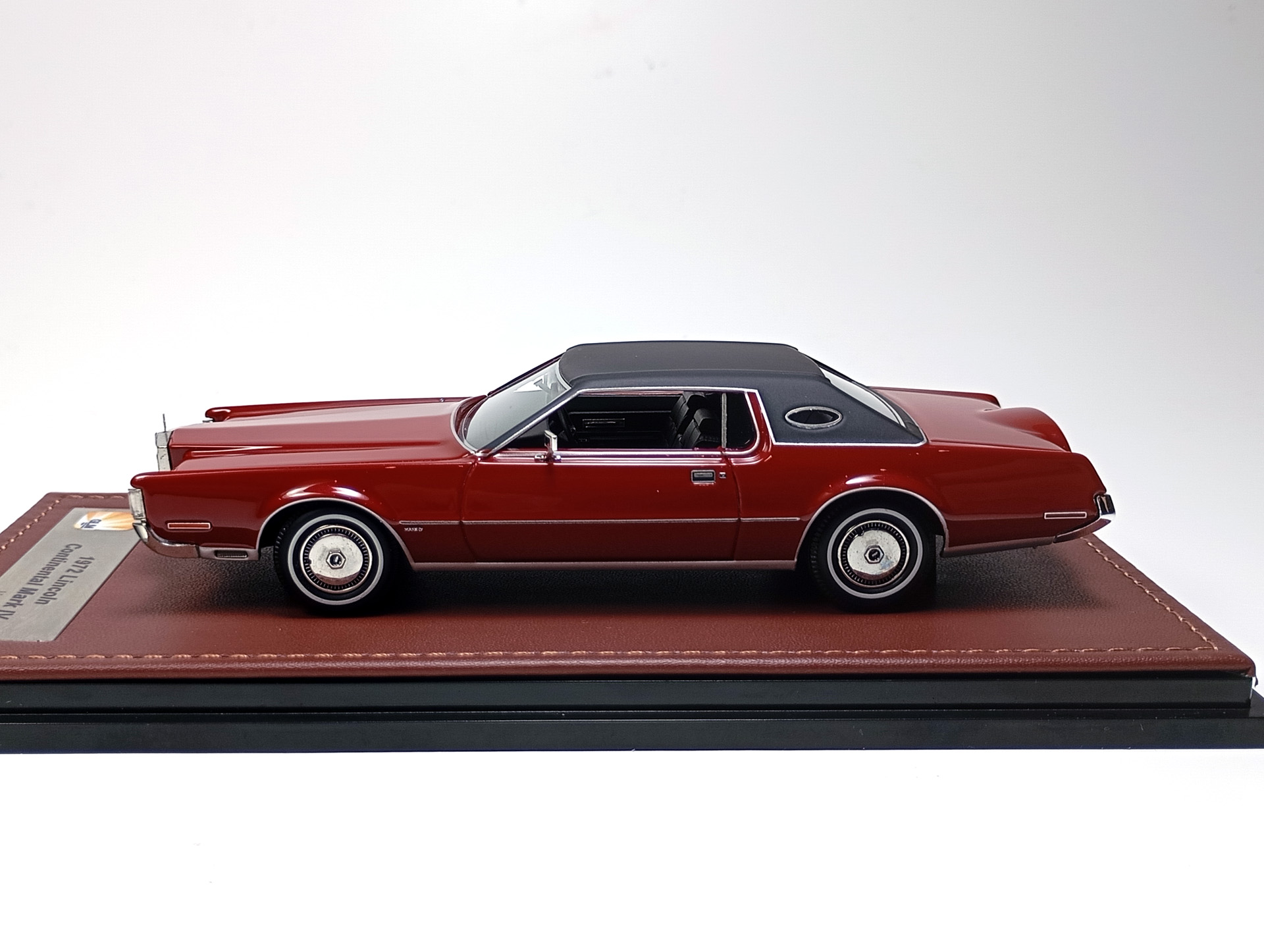 1/43 1972 Lincoln Continental Mark IV, цвет Red Moondust Poly, производитель GLM Models, артикул GLM102103, лимит 199 шт, год выпуска - 2025. Выкладываю первый из тройки Lincoln Mark IV от GLM. Четвертые марки раньше выходили у Neo, правда, более позднего 1973 года, со сплошным передним бампером. Был и темно-красный с черной крышей. У меня их нет, сравнивать могу только по фотографиям. На первый взгляд у Neo четвертые марки получились достаточно кривенькие, GLM-овские смотрятся получше. Лучше бы конечно выпустили что-то новое, но старых от Neo у меня нет, поэтому рад и этим. -