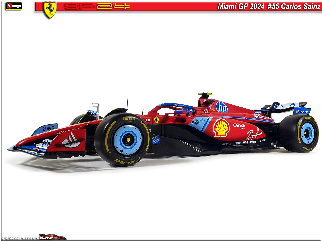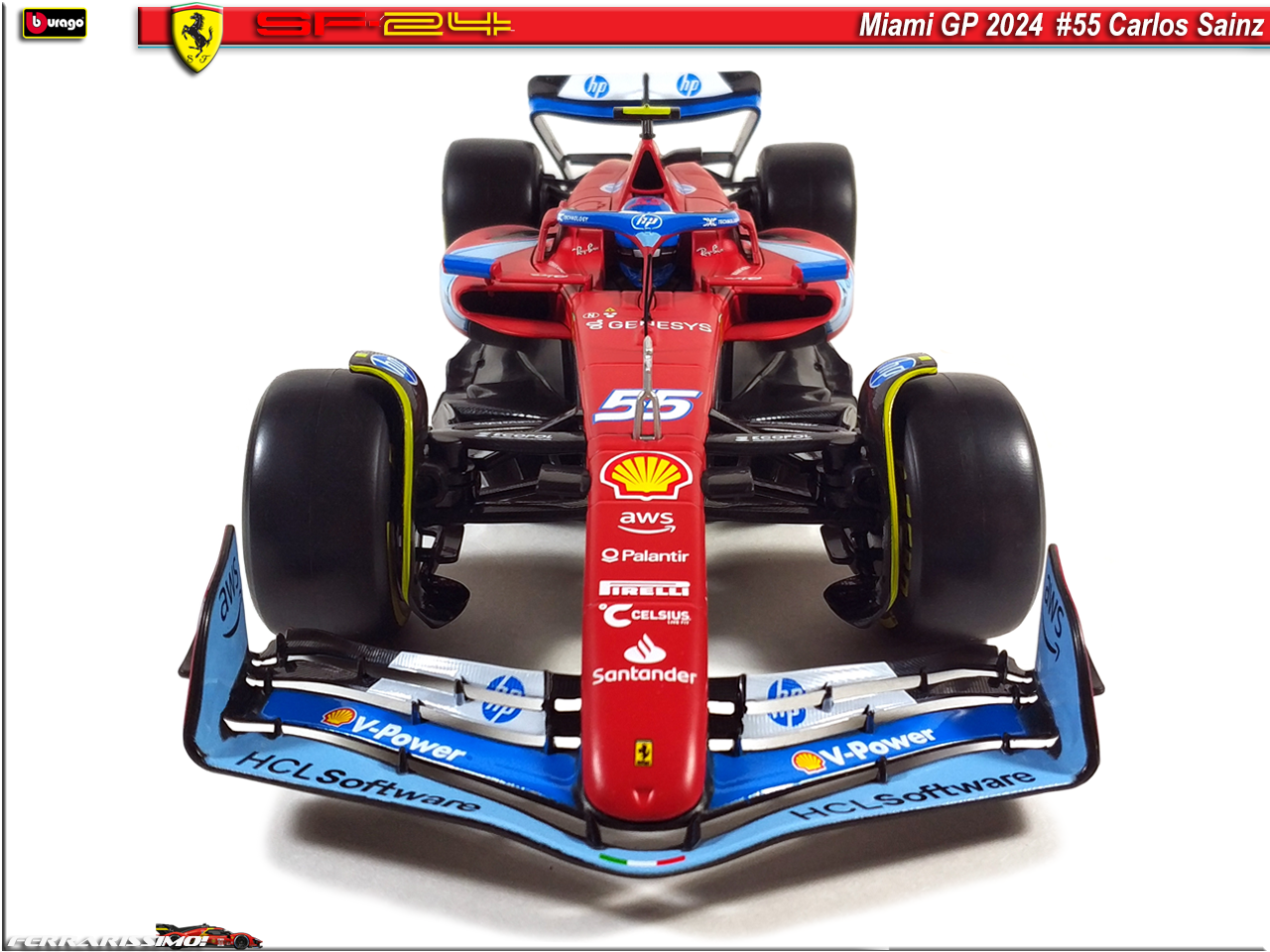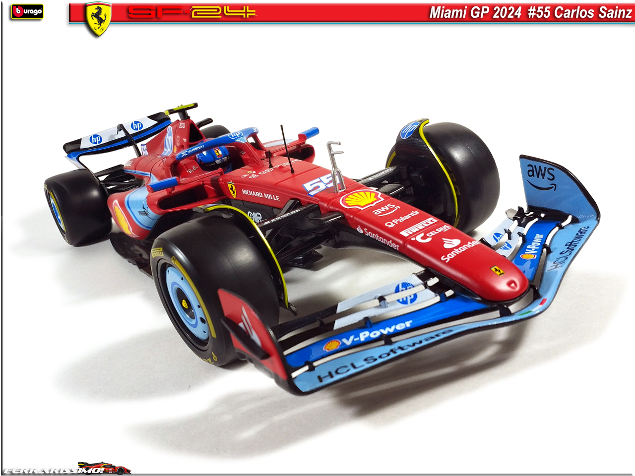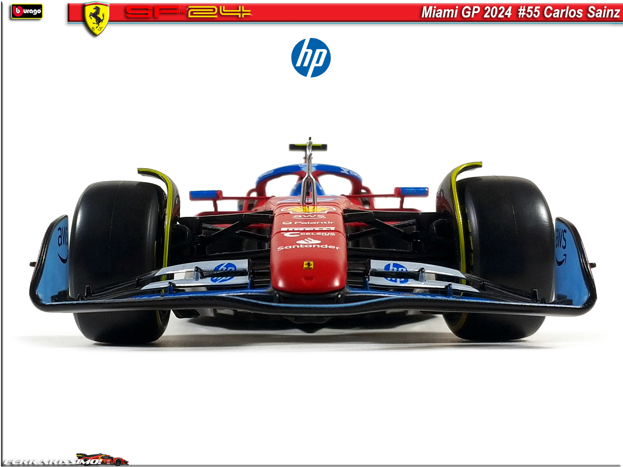 Прошло восемь лет с момента последнего показа модели Ф1, совсем забросил это направление коллекции и вот решил, так сказать, возобновить И не в хронологическом порядке, а покупать что понравится. Раздумывал не долго - взял Ferrari SF24 #55 (Carlos Sainz. Miami GP 2024) - очень понравилась ливрея в честь начала сотрудничества с Hewlett-Packard в качестве генерального партнера. Вот только ливреями, да прочими "раскрасками" и остается любоваться на фоне удручающих результатов Скудерии в Ф1. Ну и ладно, модель выполнена весьма неплохо, и это очень радует. 1:1