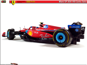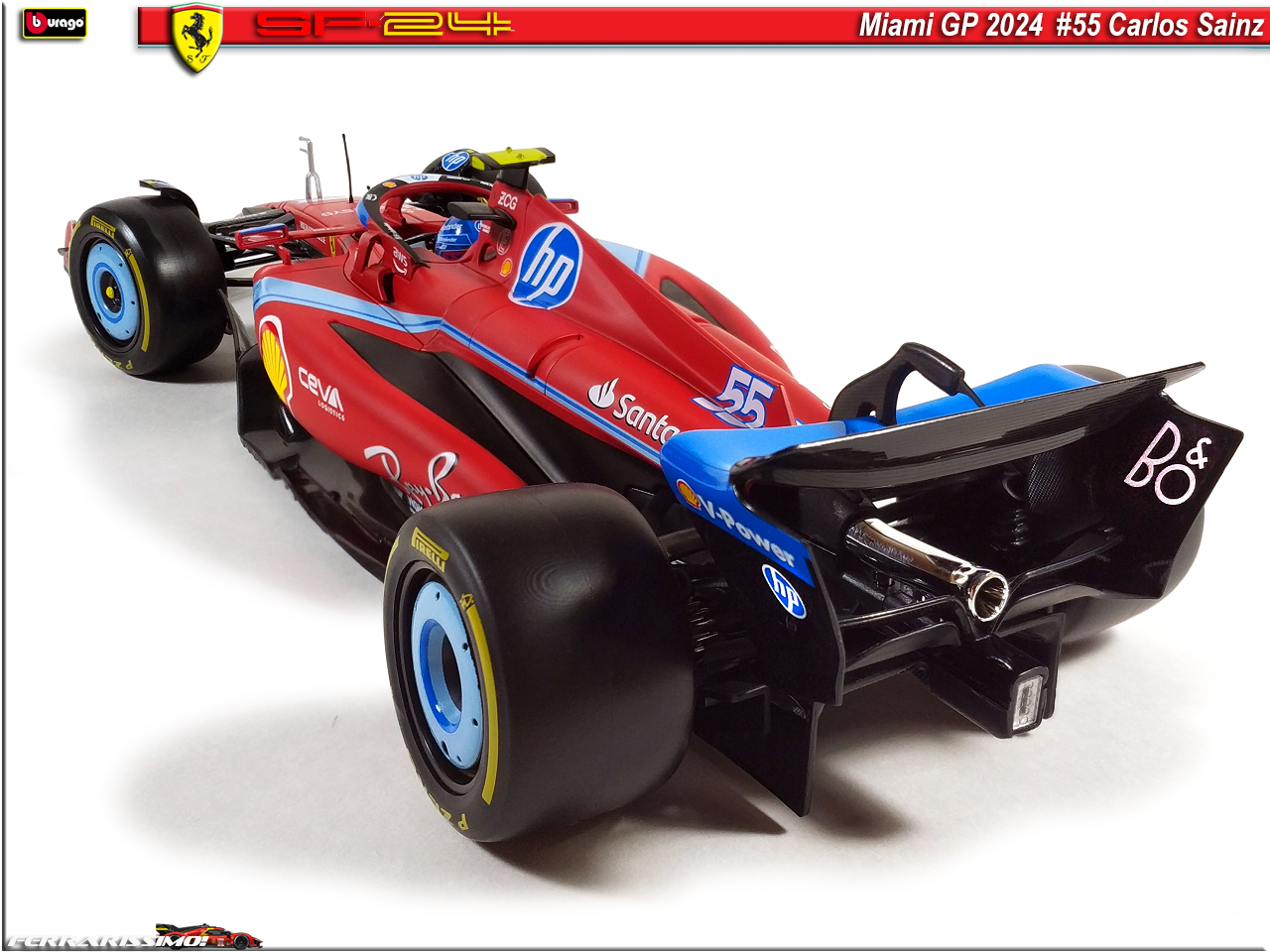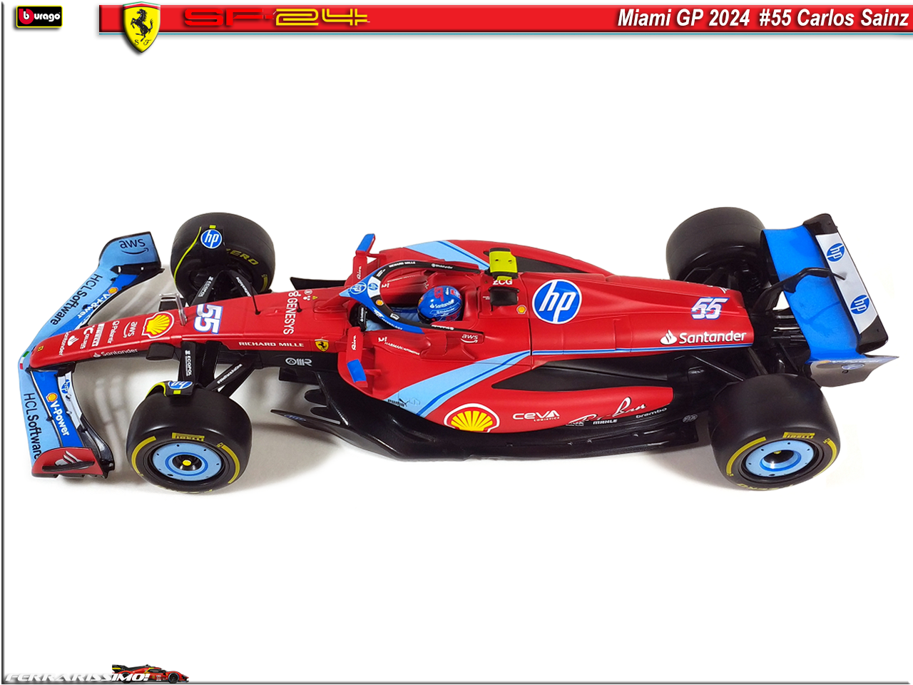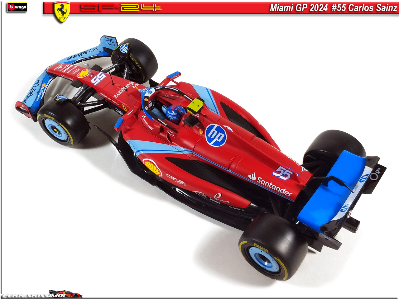 Прошло восемь лет с момента последнего показа модели Ф1, совсем забросил это направление коллекции и вот решил, так сказать, возобновить И не в хронологическом порядке, а покупать что понравится. Раздумывал не долго - взял Ferrari SF24 #55 (Carlos Sainz. Miami GP 2024) - очень понравилась ливрея в честь начала сотрудничества с Hewlett-Packard в качестве генерального партнера. Вот только ливреями, да прочими "раскрасками" и остается любоваться на фоне удручающих результатов Скудерии в Ф1. Ну и ладно, модель выполнена весьма неплохо, и это очень радует. 1:1