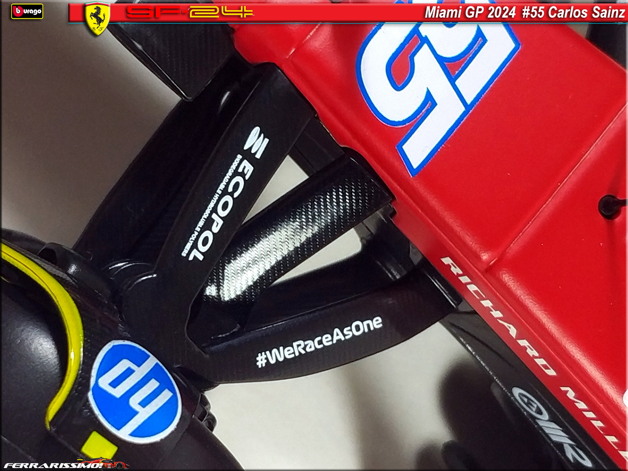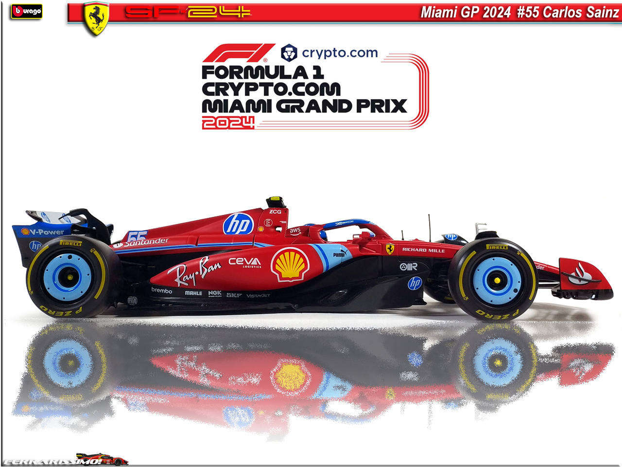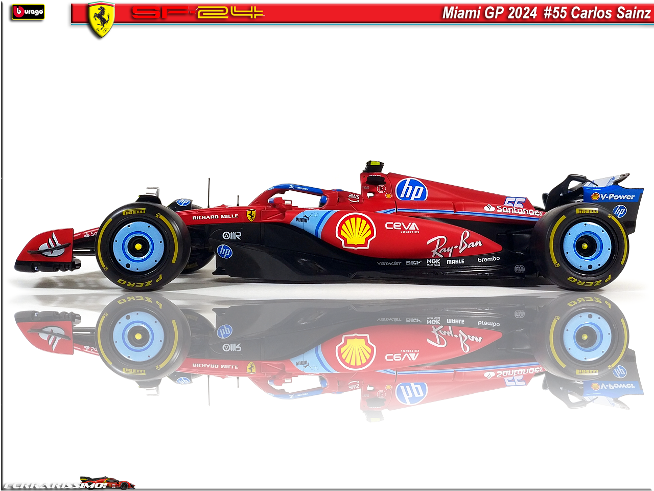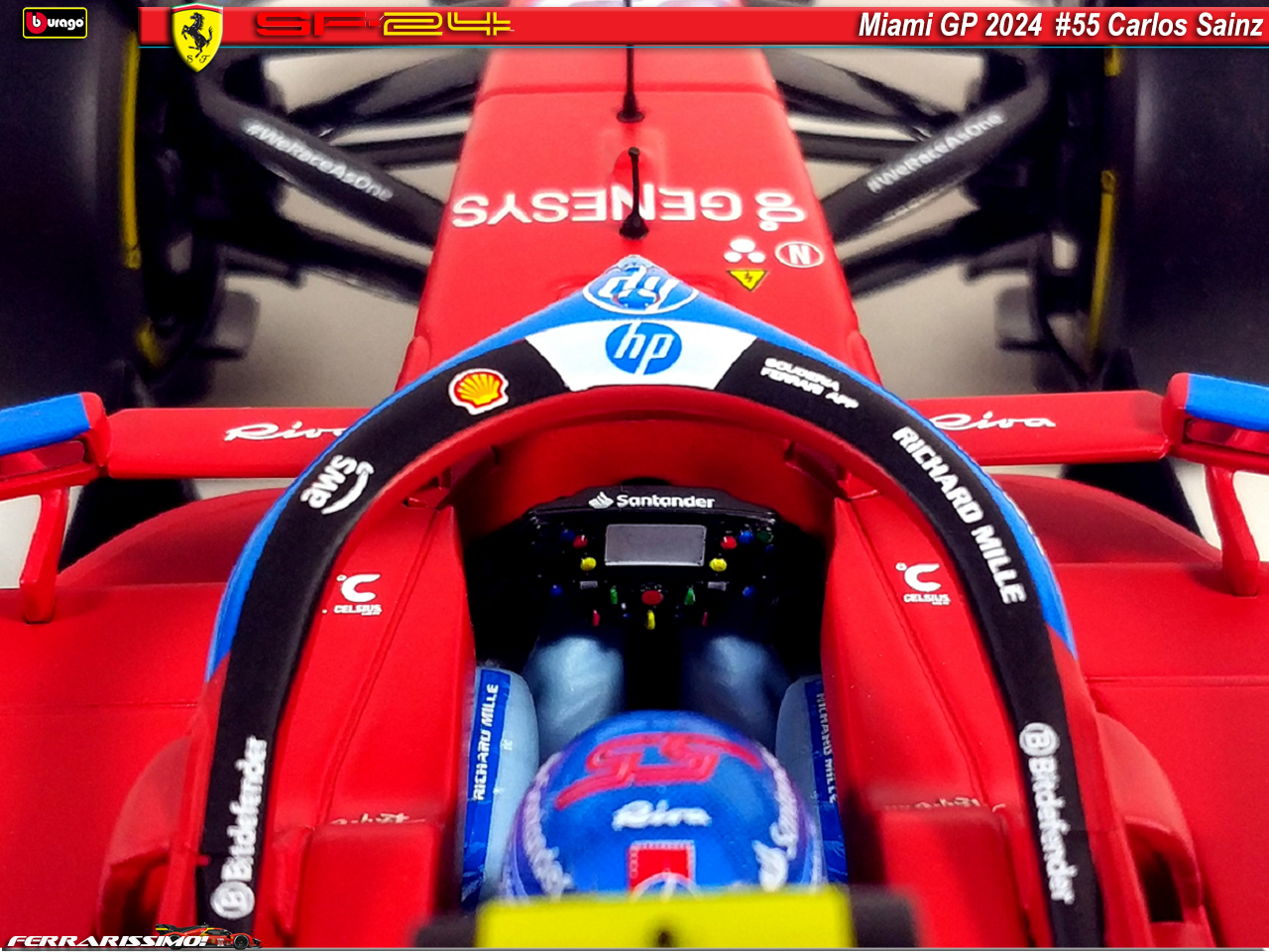 Прошло восемь лет с момента последнего показа модели Ф1, совсем забросил это направление коллекции и вот решил, так сказать, возобновить И не в хронологическом порядке, а покупать что понравится. Раздумывал не долго - взял Ferrari SF24 #55 (Carlos Sainz. Miami GP 2024) - очень понравилась ливрея в честь начала сотрудничества с Hewlett-Packard в качестве генерального партнера. Вот только ливреями, да прочими "раскрасками" и остается любоваться на фоне удручающих результатов Скудерии в Ф1. Ну и ладно, модель выполнена весьма неплохо, и это очень радует. 1:1
