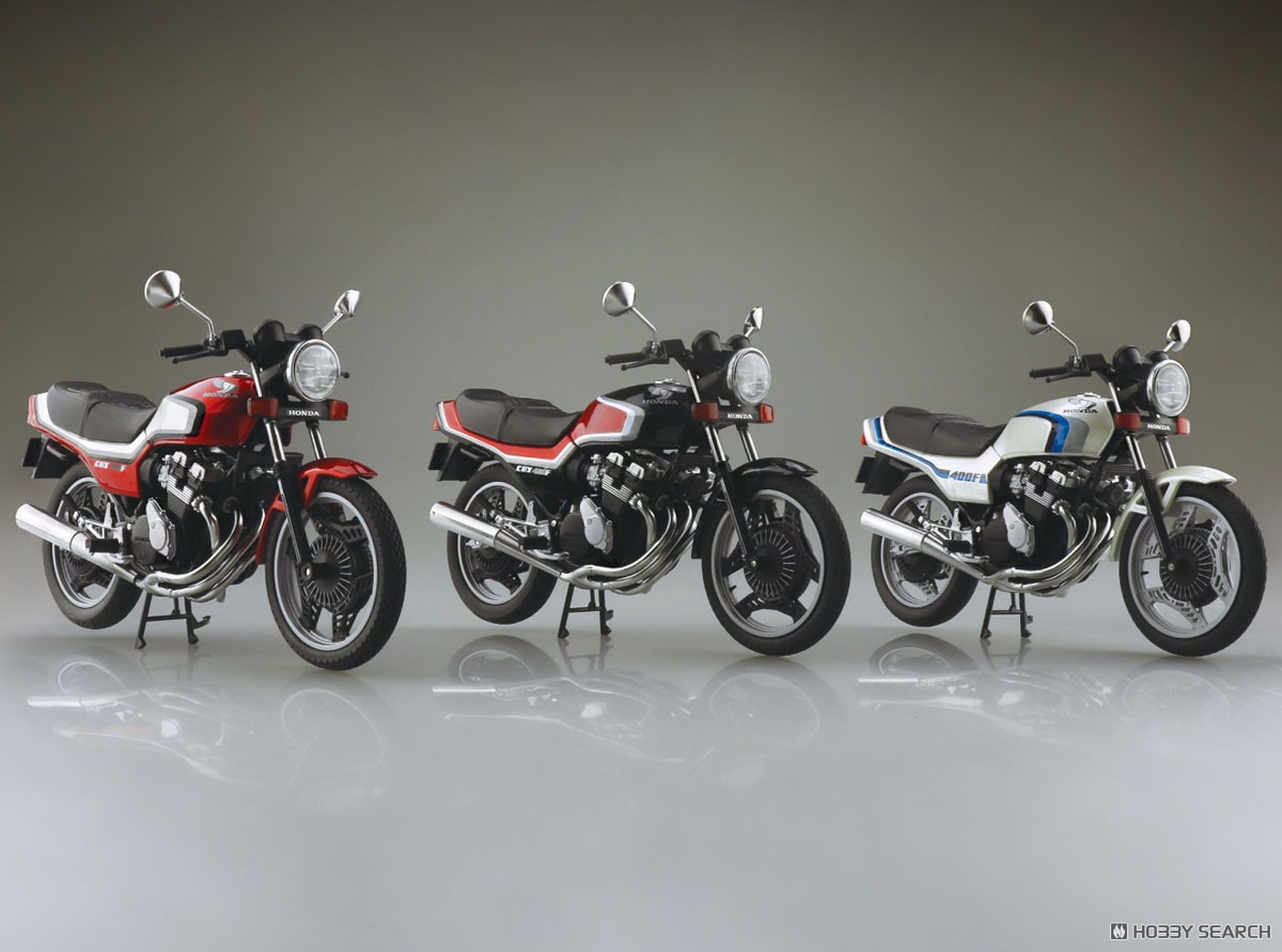 1/12. Aoshima/Skynet. Honda CBX400F Pearl Shell White (CBX550F Ver.) Honda CBX400F Candy Ala Moana Red / Pearl Shell White. Honda CBX400F Black / Candy Ala Moana Red.