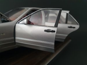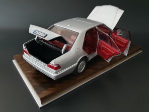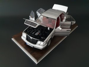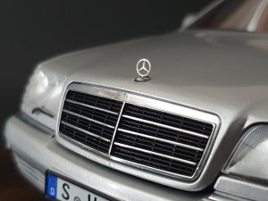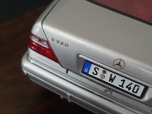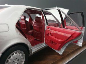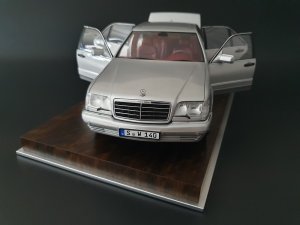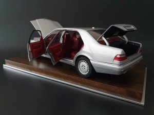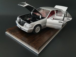 Коллекционная масштабная модель: Mercedes Benz S320 W140 (silver) 1997 Производитель: Norev, (Dealer box) Catalog No. B66040605 Масштаб: 1:18 Материал: Diecast (Metall) Функционал: Есть, полный (двери, багажник, капот, поворотный руль, рабочие колеса, отделка салона и багажника флоком),