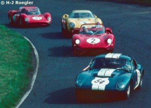 Трасса: Северная петля Нюрбургринга (Германия), 22 810 км Организатор: ADAC e.V. Мюнхен Нюрбургринг. 1000 километров Чемпионат мира по спортивным автомобилям (раунд 9) Вызов Мондиале (раунд 3) Чемпионат Германии по кольцевым гонкам на автомобилях класса «Гран Туризмо» (раунд 2) Погода: горячий, сухой Время начала: 9:00 Сетка: Старт в Ле - Мане Расстояние: 1000 километров Посещаемость: 400000 Вошедший: 94 Практикуемый: 70 Квалифицированный: 64 Начатый: 63 ЗАКОНЧЕННЫЕ: 32 По рубрикам: 32 Классы: Практика Начать Класс Прототип GT +3000 15 15 6 Прототип GT 2000 10 10 6 Прототип GT 1300 3 3 1 Прототип GT 1000 4 2 1 Гранд-туринг +3000 7 4 3 Гранд Туринг 3000 5 5 3 Гранд Туринг 2000 5 5 4 Гранд Туринг 1600 10 9 3 Гранд Туринг 1300 10 10 5 ФотогалереяВъезжали В ВагоныТехнические данныеВнешний видРезультаты гонокСеткаКвалификационныйВремя прохождения круга Тренировки перед гонкой: С 20 по 22 мая было проведено 3 квалификационных заезда общей продолжительностью 1080 минут ПОБЕДИТЕЛИ: В целом: 1 Ferrari 330 P2 Сюрте / Скарфиотти Прототип GT 2000: 20 Порше 904/8 Бонье / Риндт Прототип GT 1300: 33 Остин-Хили Спрайт Бейкер / Мур Прототип GT 1000: 46 Мартини - BMW Otto / Gilges Гранд-туринг +3000: 54 Купе Shelby Cobra Daytona Бондюрант / Нирпаш Гранд Туринг 3000: 64 Феррари 250 GTO Сатклифф / Ламсден Гранд-туринг 2000: 72 Porsche 904 GTS Фишхабер / Шютц Гранд Туринг 1600: 83 Alfa Romeo Giulia TZ2 де Адамич / «Геки» Гранд Туринг 1300: 95 Abarth-Simca 1300 Bialbero Вирджилио / Каласкибетта Самые быстрые круги: В целом: 1 Ferrari 330 P2 Джон Сёртис (Великобритания) 8:50.5000 154,7900 км/ч Полюсные позиции: В целом: 1 Ferrari 330 P2 Джон Сёртис (Великобритания) 8:53.1000 154,0350 км/ч Прототип GT 2000: 20 Порше 904/8 Бонье / Риндт 9:08.2000 Прототип GT 1300: 35 Abarth-Simca 1300 Bialbero Деметц / Селла 9:54.7000 Прототип GT 1000: 42 Alpine M64 Renault Делагенесте / Руби 10:19.9000 Гранд-туринг +3000: 54 Купе Shelby Cobra Daytona Бондюрант / Нирпаш 9:18.5000 Гранд Туринг 3000: 64 Феррари 250 GTO Сатклифф / Ламсден 9:39.5000 Гранд-туринг 2000: 70 Porsche 904 GTS Кох / Пон 9:26.0000 Гранд Туринг 1600: 82 Alfa Romeo Giulia TZ2 Буссинелло / Дзукколи 9:49.3000 Гранд Туринг 1300: 96 Abarth-Simca 1300 Bialbero Цукини / Кнёрр 9:57.6000 Примечания, представляющие интерес: Лучшие марки по номерам: Ferrari (15), Porsche (10), Alfa Romeo (7), Abarth-Simca (6), Lotus (5) Лучшие двигатели по номерам: Ferrari (15), Ford (13), Porsche (10), Alfa Romeo (7), Abarth (6) Самые популярные типы автомобилей: Porsche 904 (9), Abarth-Simca 1300 (6), Ferrari 250 LM (5), Lotus Elan (5) Национальности водителей: D (40), GB (33), I (20), F (8), B (7), CH (6), NZ (3), USA (3), AUS (2), L (2) Национальности команд: Великобритания (18), Ирландия (16), Дания (16), Франция (4), Бельгия (3), Швейцария (3), США (2) Наиболее используемые цвета: красный (25 %), серебристый (17 %), более тёмный (12 %), синий (11 %), тёмный (7 %), зелёный (7 %) Положения двигателя: с передним расположением двигателя (46 %), со средним расположением двигателя (43 %), с задним расположением двигателя (11 %) Средний объем двигателя: 2514 куб. см Самые старые известные драйверы: Морис Трентиньян (48 лет), Андре Симон (45 лет), Оноре Вагнер (44 года) Самые молодые известные водители: Ролло Фейлдинг (22 года), Крис Амон (22 года), Симон де Латур (22 года) Женщины-водители: Gabriel Konig Официальная Программа Гонки: Обложка Список участников Расписание Карта Трека -