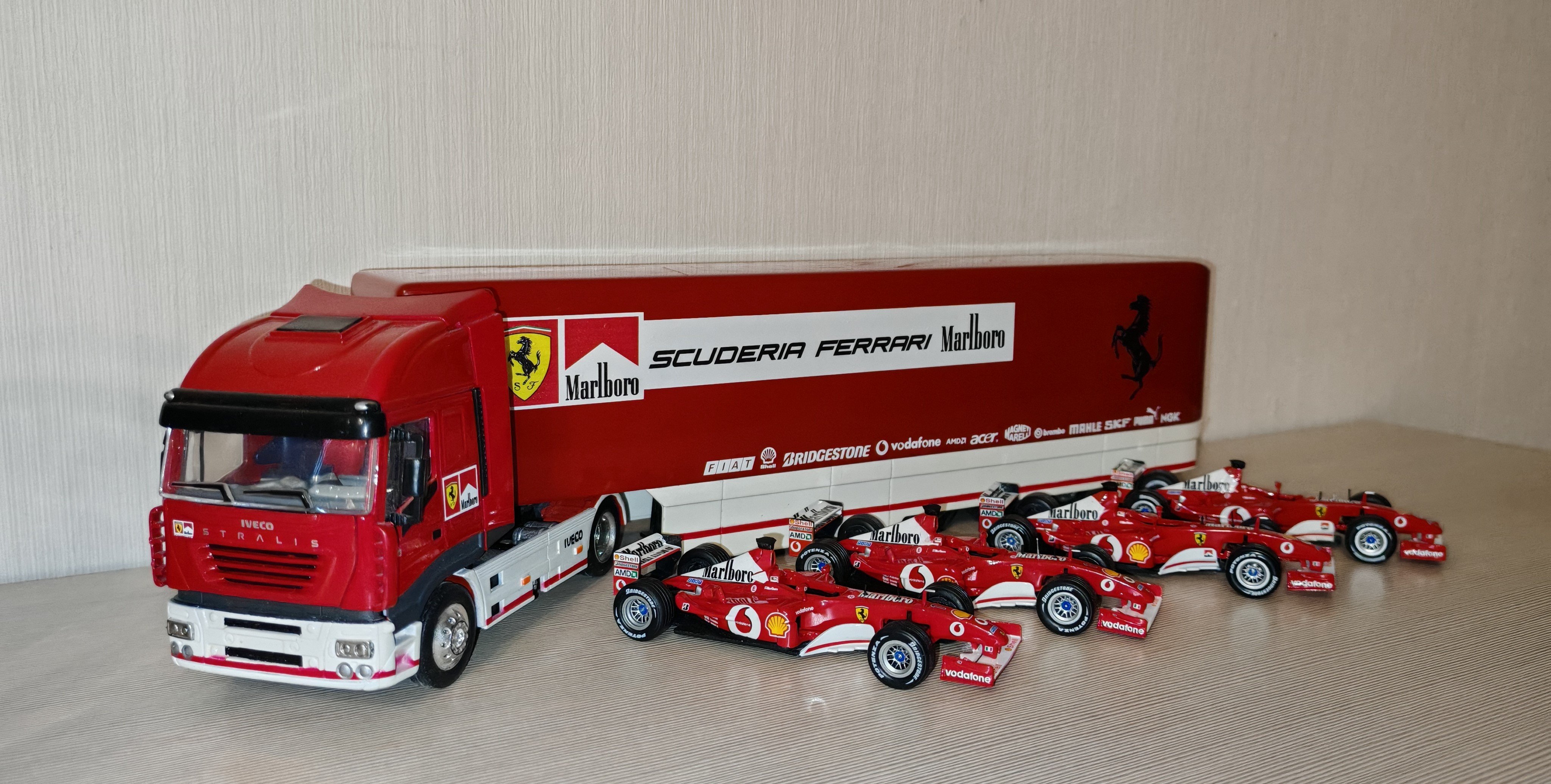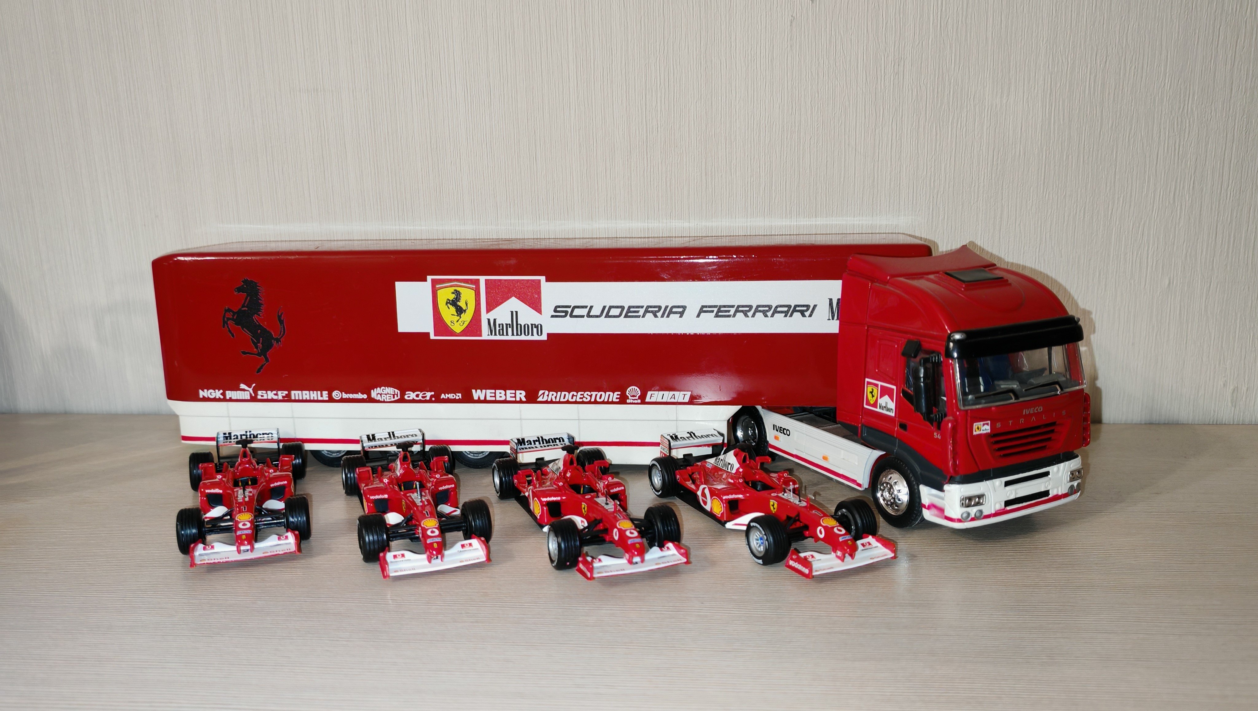 Сергей Колтун Опубликовано: В пятницу в 14:34 Автор Жалоба Опубликовано: В пятницу в 14:34 (изменено) Всем Форумчанам Привет ! История длинною в 3 года, когда -то захотел себе транспортёра Феррари. Голова Нью Рей , прицеп NZG. На копийность не претендую , образ был собирательным под 2006 год. 216. Модель Iveco Stralis Ferrari Transporter 2006 "New Rey" - "NZG" Ferrari 248 F1 2006 Felipe Massa "Ferrari F1 Collection" Далее с болидами 2003 года. А хочется больше Marlboro с болидами 2002 года. Изменено В пятницу в 17:53 пользователем Сергей Колтун 3 С Уважением Колтун Сергей Сергеевич .
