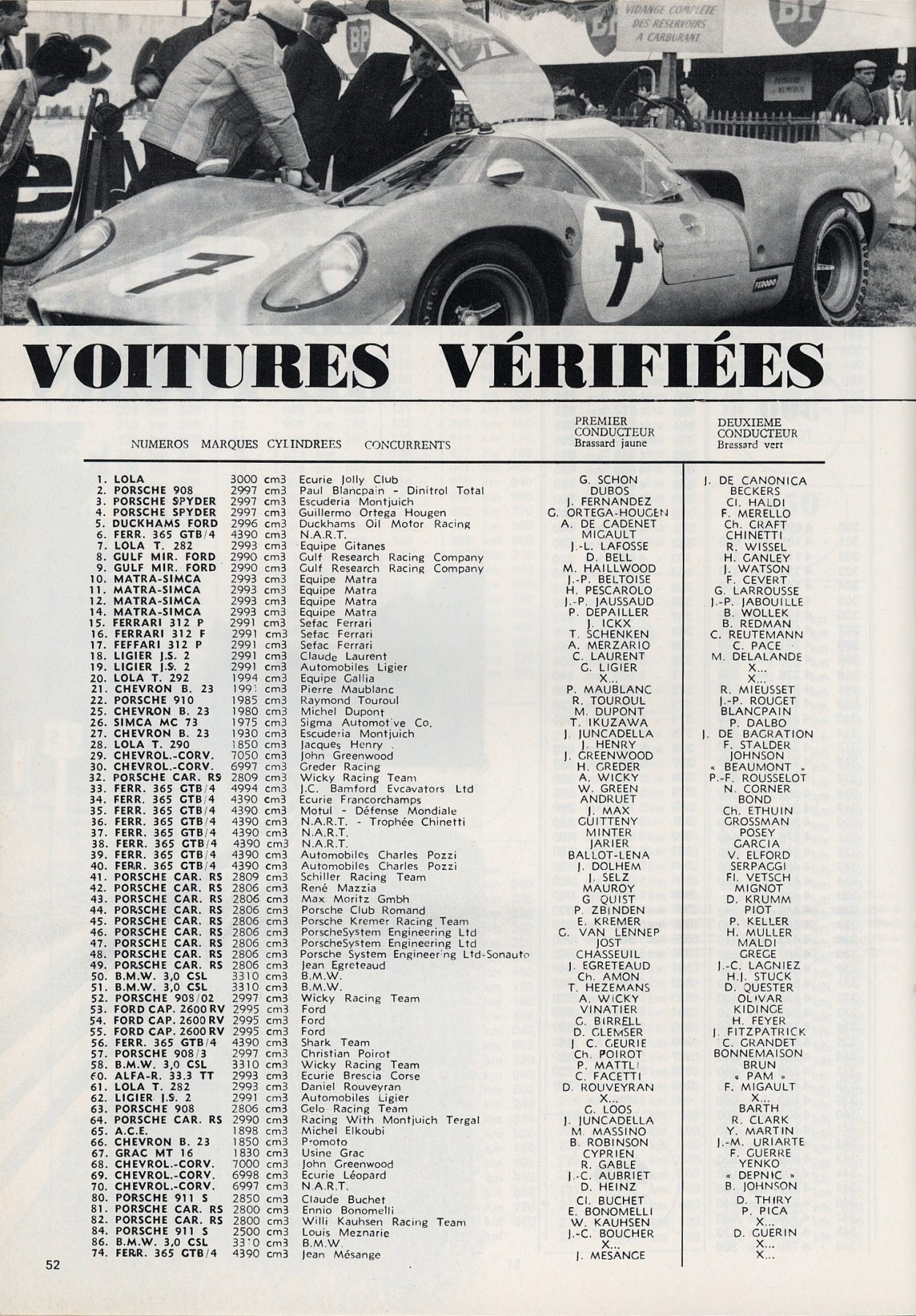 Сергей Колтун Опубликовано: В пятницу в 17:52 Автор Жалоба Опубликовано: В пятницу в 17:52 1973 год 24 часа Ле-Мана был 41-м Гран-при на выносливость и проходил 9 и 10 июня 1973 года. Это был восьмой тур Чемпионат мира среди мастеров 1973 года. Ле-Ман в 1973 году Гонка обещала быть близкой: Ferrari, Matra и Porsche одержали две победы в чемпионате, а также неожиданную победу Mirage в Спа. Это действительно оказался один из самых напряженных Ле-Манов: гонка была выиграна в боксах, поскольку и Ferrari, и Matra по очереди лидировали, но были заблокированы механическими неисправностями. Все три Ferrari лидировали, но поскольку их обогнали механические проблемы, их обогнала Matra Анри Пескароло и Жерар Ларрусс, несмотря на свои проблемы, это взяло клетчатый флаг. В итоге это было комфортное преимущество на шесть кругов над Ferrari, занявшей второе место Мерцарио и Темп с Матрой Жабуй/Жоссо третий. Была определенная симметрия для французского автомобиля и французской команды, выигравшей пятидесятилетие первых "24 часов Ле-Мана". Ferrari действительно выиграла категорию GT после напряженной борьбы с Porsche, а у BMW был единственный финишер в категории туристических автомобилей группы 2. 1 С Уважением Колтун Сергей Сергеевич .