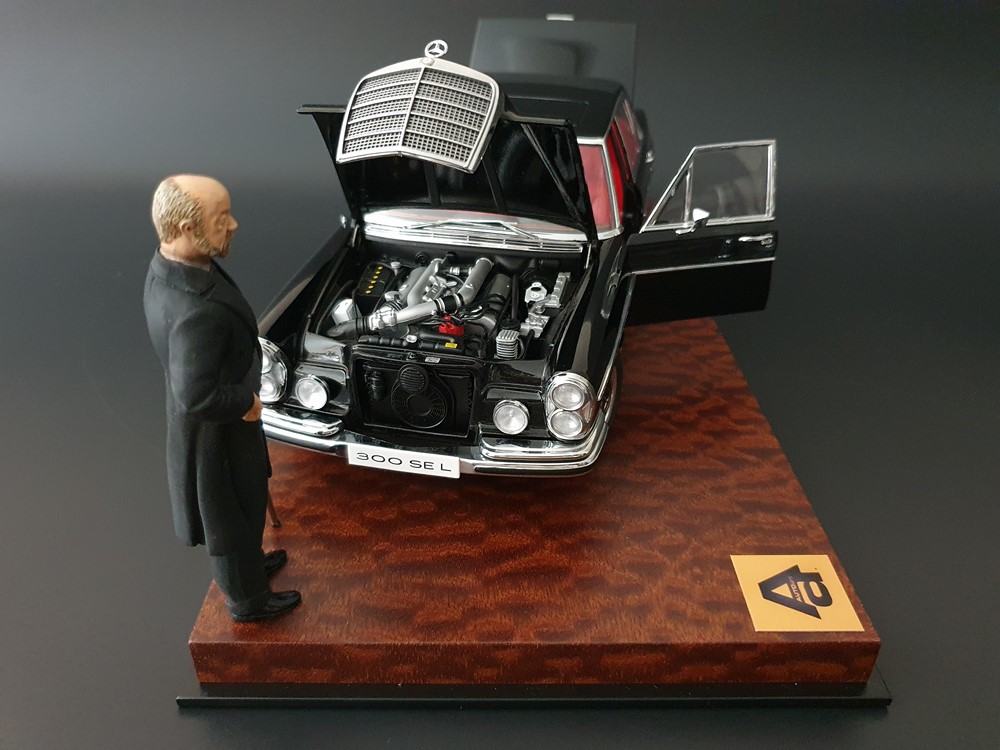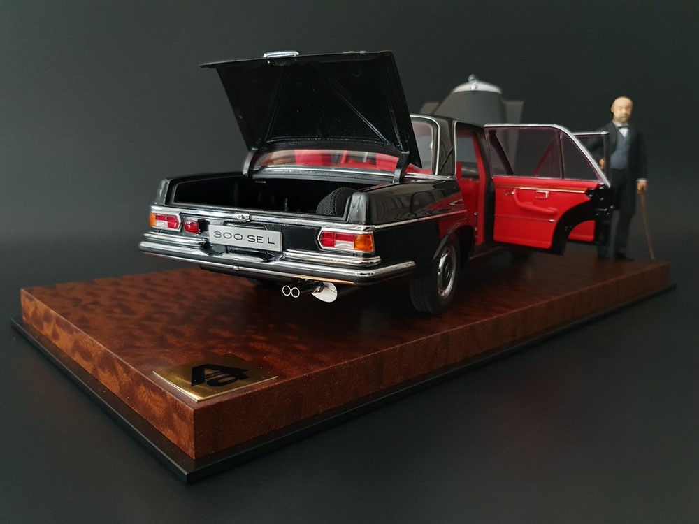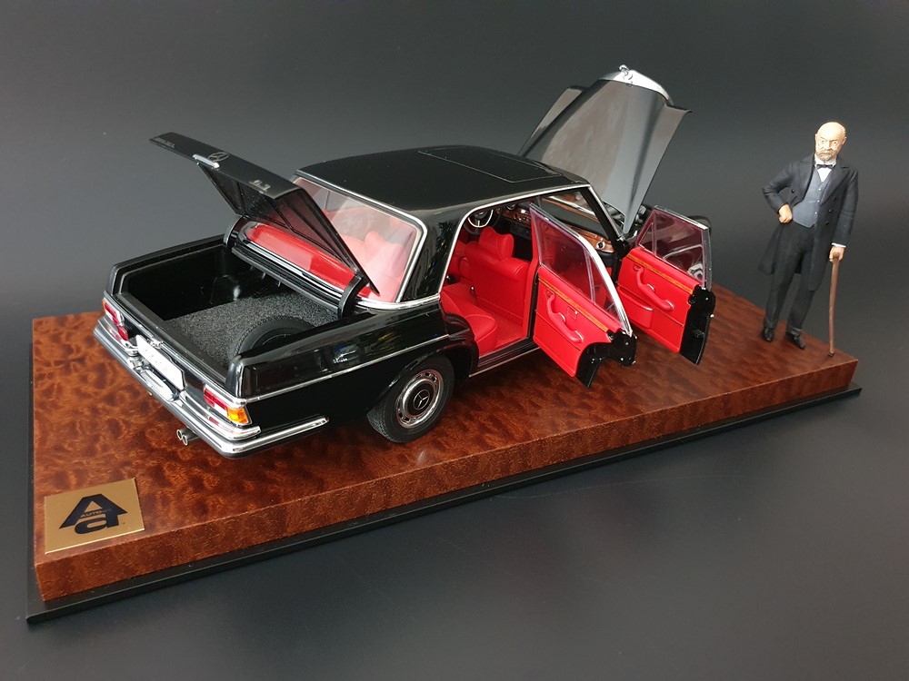 privatburo Опубликовано: В четверг в 21:55 Автор Жалоба Опубликовано: В четверг в 21:55 (изменено) Коллекционная масштабная модель: Mercedes Benz S-Class 300SEL 6.3 W109 (black) 1970 Производитель: AUTOart (Millennium), Catalog No. 76140 Масштаб: 1:18 Материал: Diecast (metall) Функционал: Есть, полный (4 двери, багажник, капот на правильных петлях, поворотный руль, рабочие колеса, пол в салоне флокирован так же как и в багажнике, запасное колесо), Тираж: Без ограничений, Статус: ULTRA MEGA RARE, Изменено В четверг в 22:01 пользователем privatburo 3 РАСПРОДАЖА ЭКСКЛЮЗИВНЫЕ ФУТЛЯРЫ ДЛЯ МОДЕЛЕЙ МОЙ ГАРАЖ