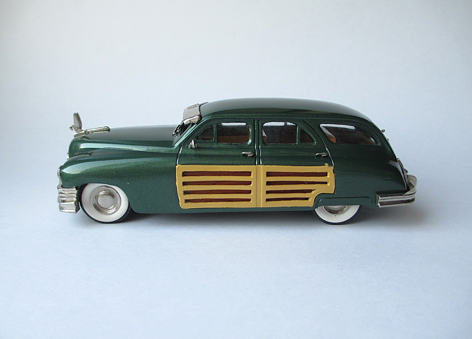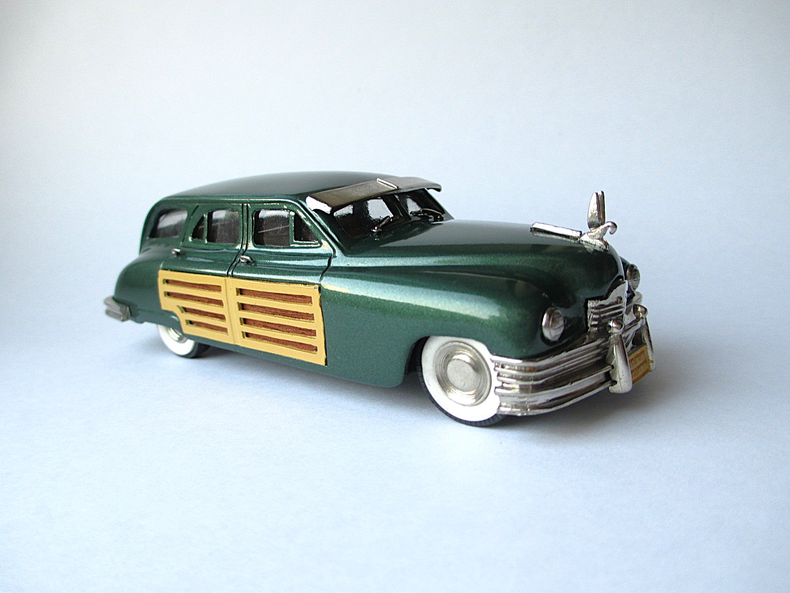 Deus-m Опубликовано: 18 часов назад Автор Жалоба Опубликовано: 18 часов назад 11.02.2026 в 09:27, HOBBYDRAGON сказал: И Тин Уизард - Тин Уизарду рознь))), хотя эта фирма, всегда стремилась к более подробной деталировке, чем другие "тяжелые металлисты". Отличная модель, украсит любую коллекцию Дэйв, вот по-поводу деталировки и Heavy Metal Rock (Model). Есть моделька интересная: 1950 Packard Woodie Wagon Goldvarg (G 6) Series: Original White Metal Белый металл. Сделано в Аргентине. Так сказать - ощущения и впечатления из первых рук. Детали отлиты 21.02.1991. Собрано - 24.09.1993 г. Купил чтобы удостовериться в её реальной тяжести. А также для подтверждения того, что деревянная обшивка дверей сделана из дерева. Да, подтверждаю, это тяжеленная металлическая чушка, весом 496 грам. И действительно - на дверях деревяшки, покрытые лаком. Напоминает мне броневик. Поверх окон два бронелиста. Капот массивный, эмблема, огромная как бивни, может протаранивать крепостные ворота. Модель неказистая, тяжеловесная на вид, может сделана не очень аккуратно (это же не смола современная). Если убрать колёса и сверху приделать ручку - будет походный мини-утюг для поездок в командировки. Внутрь без особого ущерба можно угли засыпать, когда электричества не будет. 3 Все шасси Lotus Все шасси Formula 1