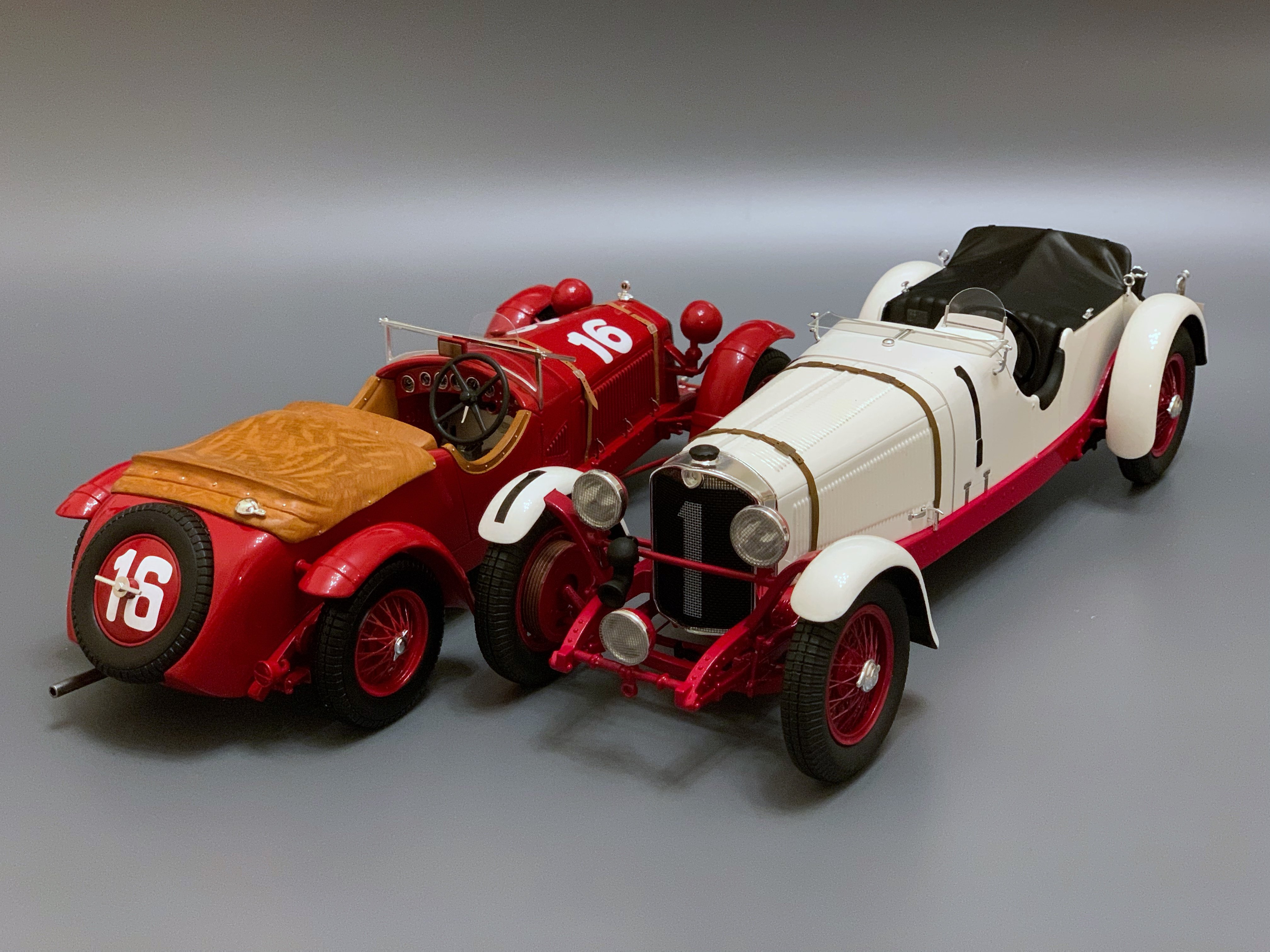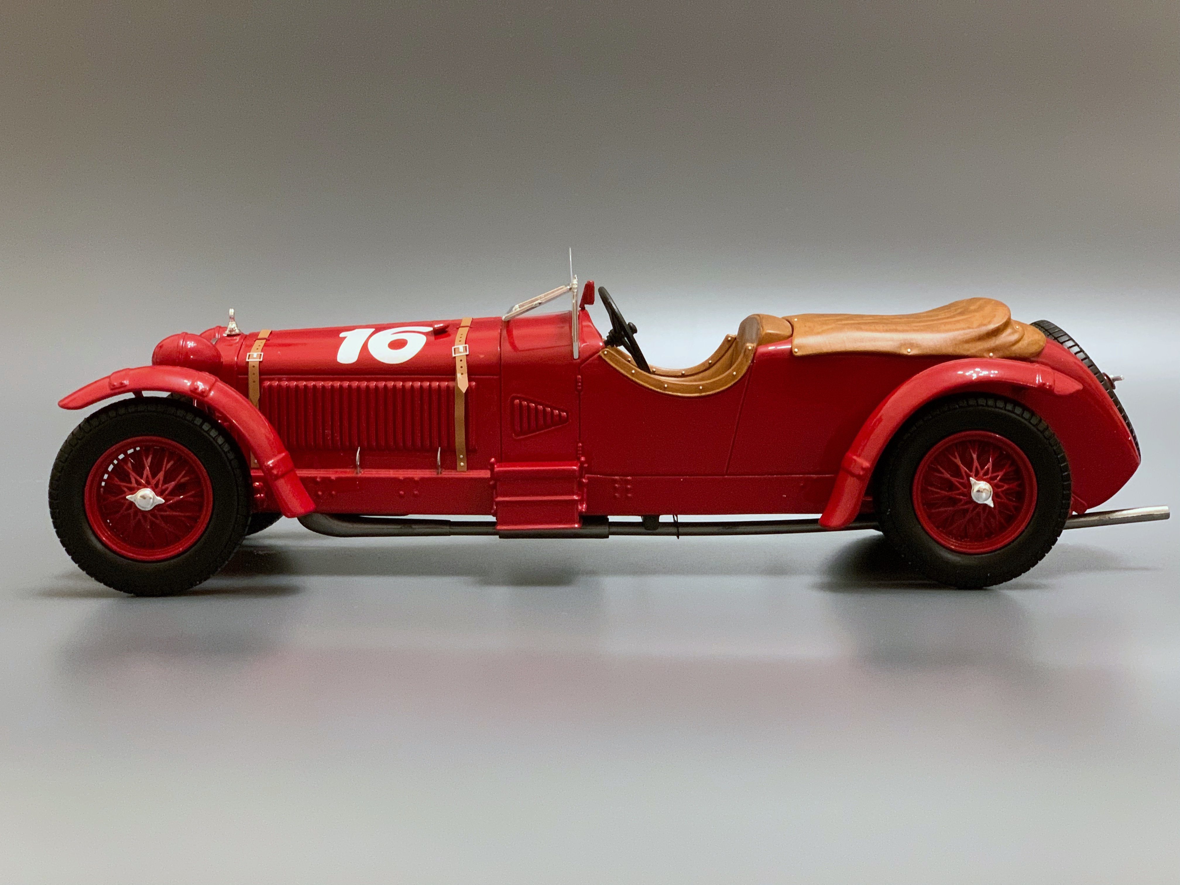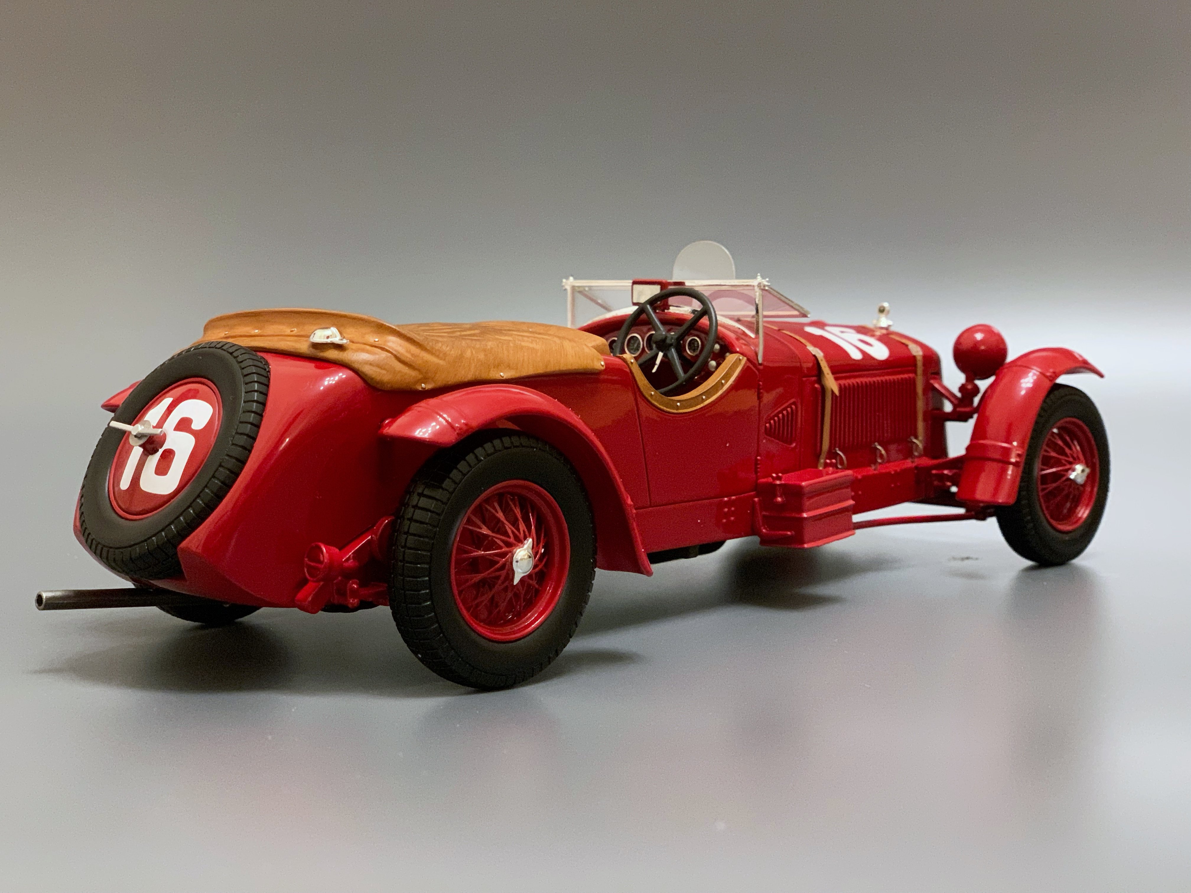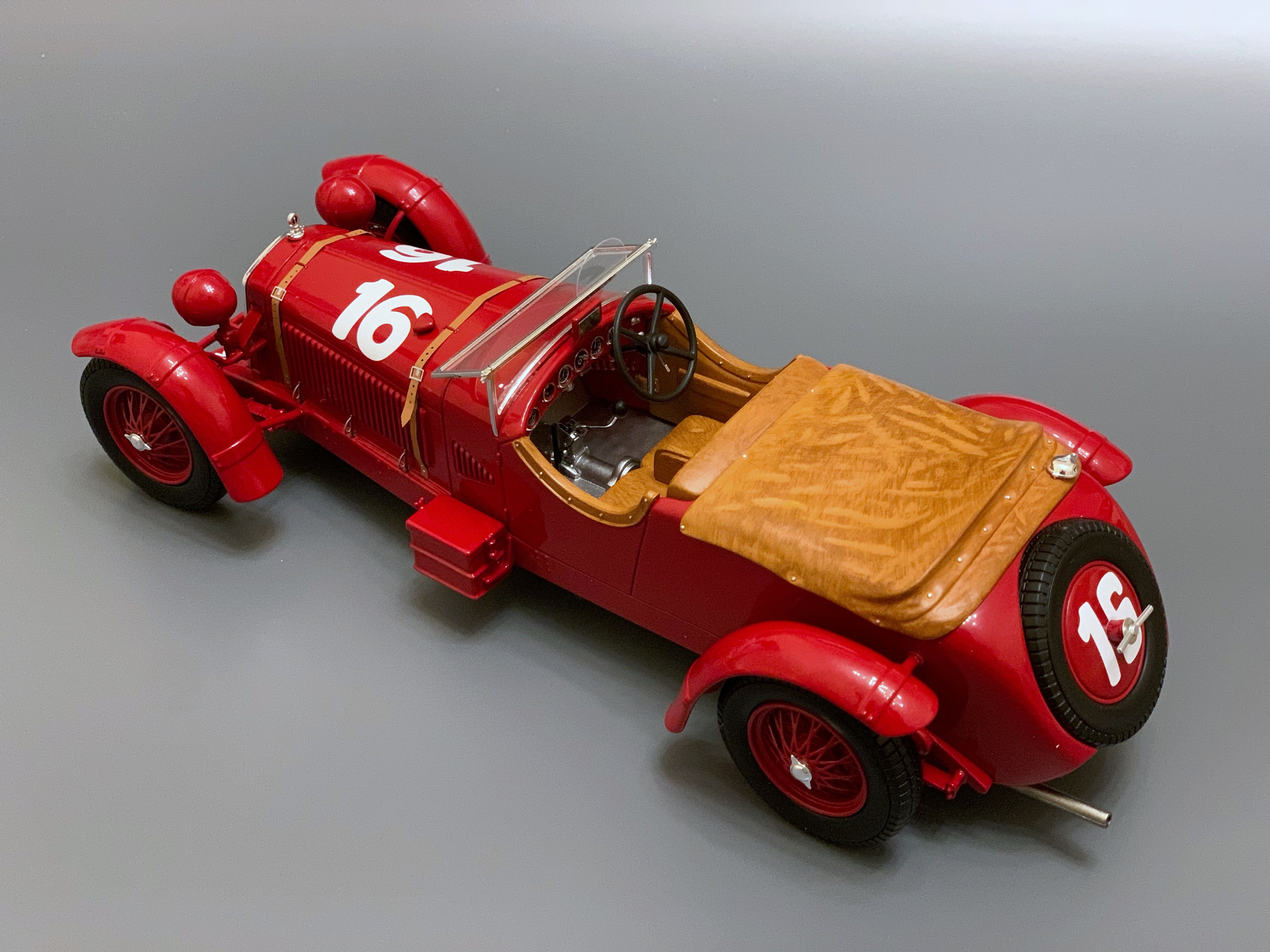 Контейнер Опубликовано: 11 марта Автор Жалоба Опубликовано: 11 марта (изменено) 1931 Alfa Romeo 8C 2300 #16, Winner Le Mans 24H, E. Howe / H. Birkin (Spark 1/18) Свою первую победу в Ле Мане компания Alfa Romeo завоевала с новейшей 8C-2300 под управлением Эрла Хау и Генри Биркина. Экипаж не только выиграл гонку в абсолютном зачёте, но и одержал победу в категориях Index of Performance и Cup Biennale (кубок Раджа-Уитворта, вручаемый по итогу двух гонок). Автомобиль оснащался рядным 8-цилиндровым двигателем мощностью 130 л.с. (155 л.с. для Ле Мана) и предлагался покупателям в двух вариациях: с базой 122 дюйма ('lungo' или 'Le Mans') и 108 дюймов ('corto' или 'Mille Miglia'). Заводская команда выставила в гонку 3 машины с алюминиевыми кузовами от Zagato (одна из них была запасной), а также взяла под своё крыло ещё одну машину с кузовом от Zagato, которая принадлежала Эрлу Хау, квалифицировавшемуся в Кубок Раджа-Уитворта в прошлогоднем Ле Мане. Во время практики Альфа Ромео разогнались до 193 км/ч на длинных прямых, что позволяло им ехать на равных с Mercedes-Benz и Bugatti, но все три машины страдали из-за проблем с высокими температурами горения "гибридного" топлива, которое использовала команда, и в итоге Биркин принял решение ехать на 100% бензоле, что привело к росту степени сжатия и замене поршней. На ранних этапах гонки основная борьба развернулась между двумя Bugatti и Mercedes-Benz Бориса Ивановского, а Биркин ехал на 4-м месте. Проблемы с шинами и серьёзная авария одной из Бугатти принудили французскую компанию сняться с гонки. Последовавшая затем серия проблем с шинами Englebert у Мерседеса вывела Биркина и Хау на первое место, которое они уже не упустили, опередив экипаж Ивановского на 7 кругов, и впервые в истории Ле Мана преодолев 3000 км дистанции. Изменено 11 марта пользователем Контейнер 6 ЖеняМоя коллекция 1:18