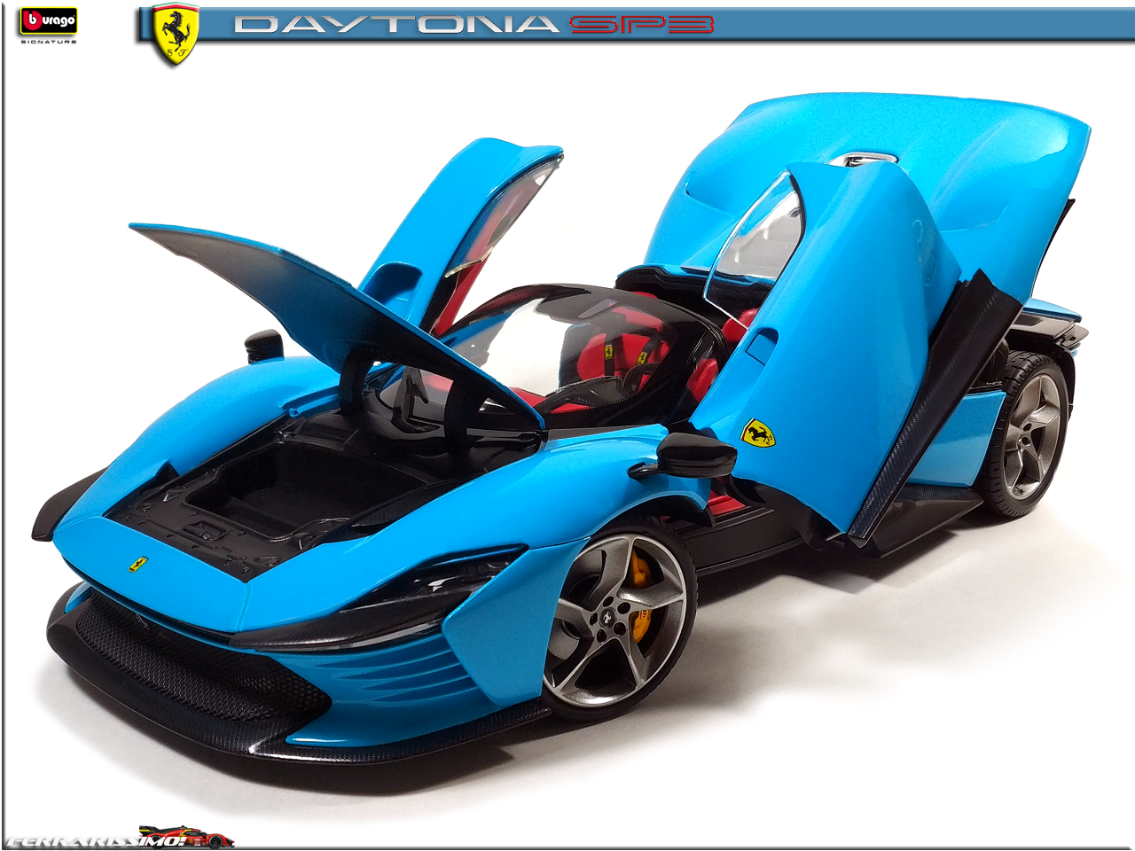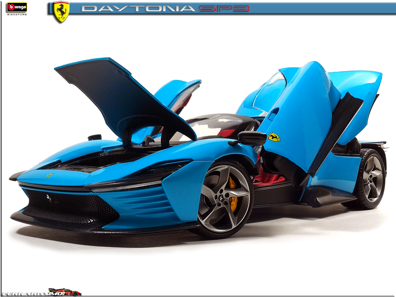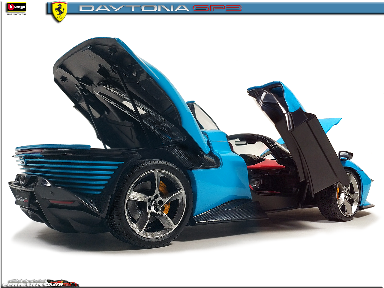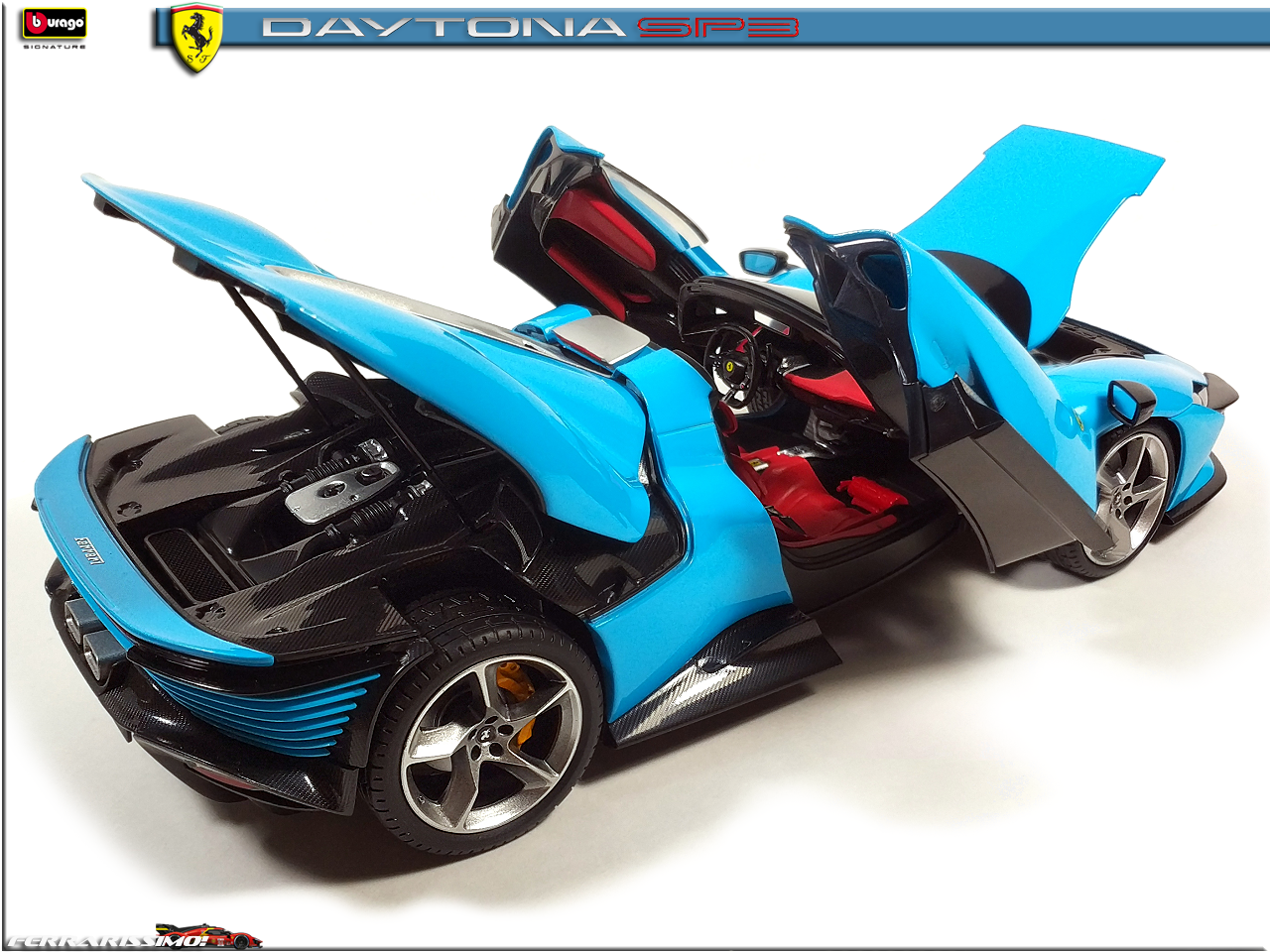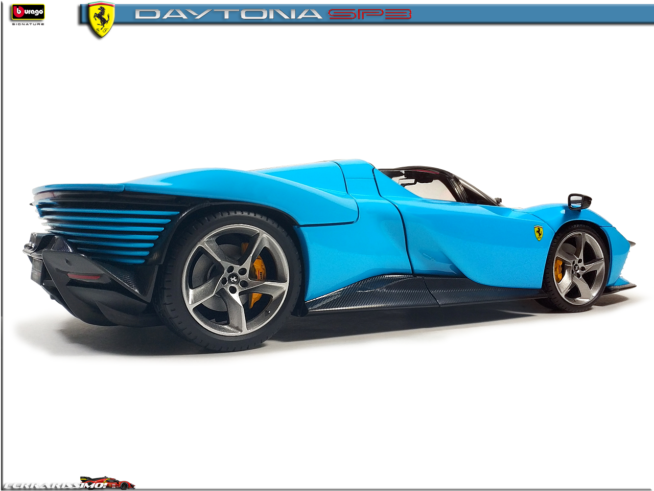 Alfanero Опубликовано: 50 минут назад Автор Жалоба Опубликовано: 50 минут назад Бывает такое, что одного "фломастера" мало... Не смог пройти мимо Ferrari Daytona SP3 в оттенке Azzurro La Plata, являющимся историческим для Скудерии - в голубых комбинезонах выступали Аскари и Сёртиз, а в 2024-м, на ГП Майами и Сайнс с Леклером. Сам болид для этого этапа имел много элементов в таком же окрасе. Засматривался на полностью "карбоновую" (Ббураго выпустила спецсерию к 50-летнему юбилею компании - там вроде еще Порше есть, может и другие марки), но яркость "адзурры" победила :) 1 : 1 Моя коллекция: FERRARISSIMO! Визитка